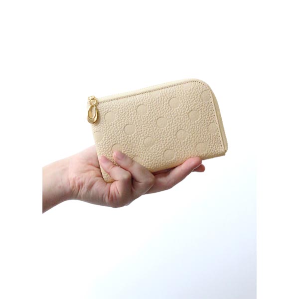 姫路レザー牛革L字ファスナーミニ財布 アイボリー